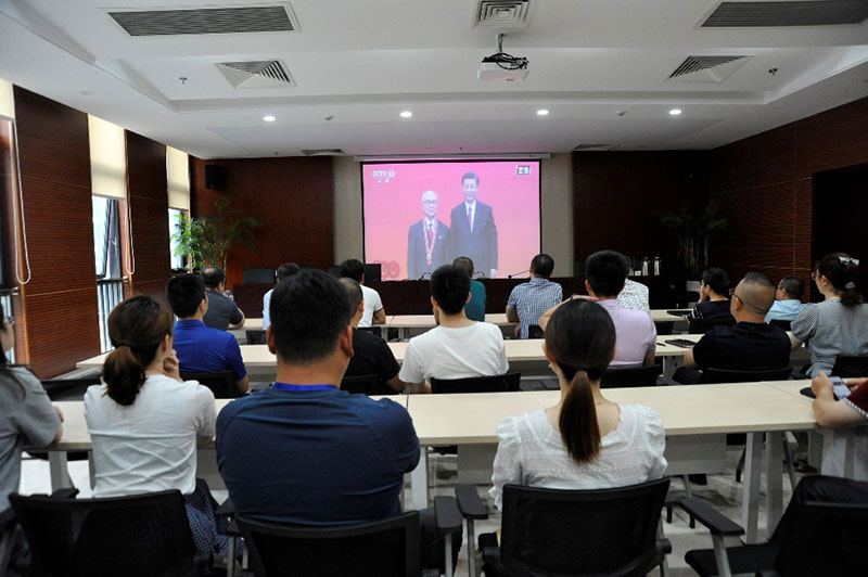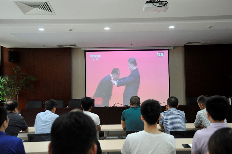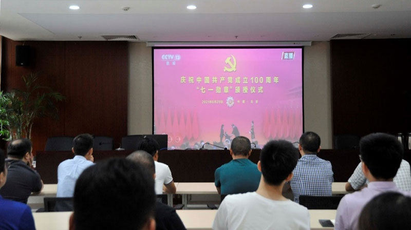 2021年6月29日上午10点,保安公司组织党员领导干部、公司本部全体员工集中收听观看“七一勋章”颁授仪式。